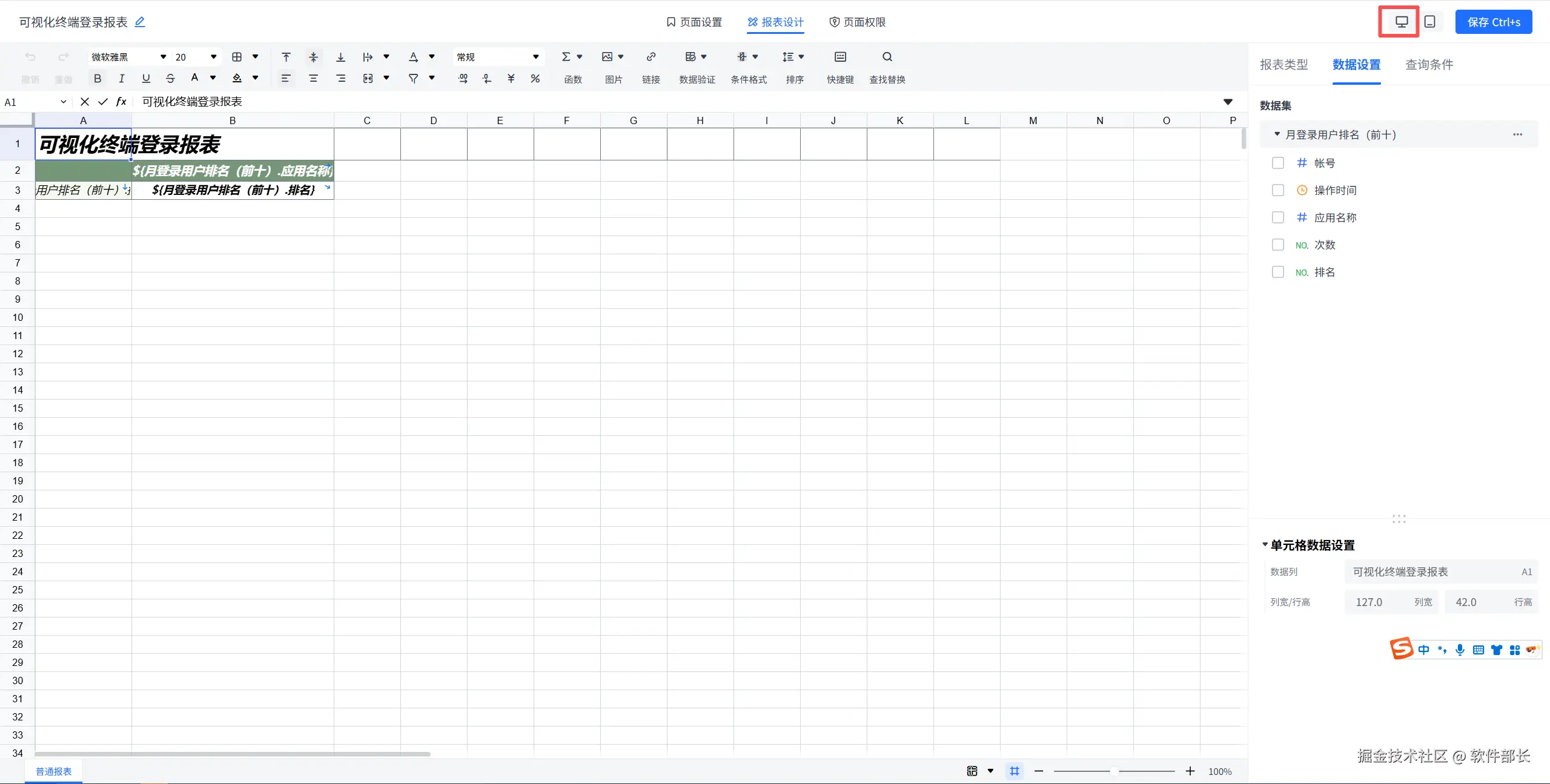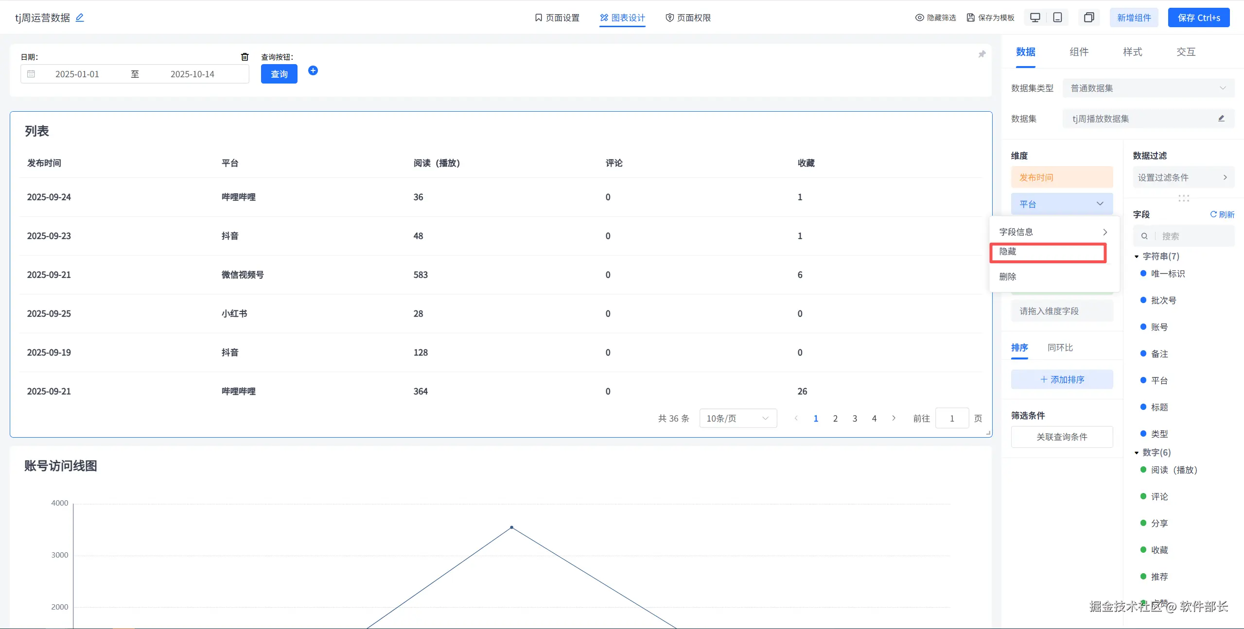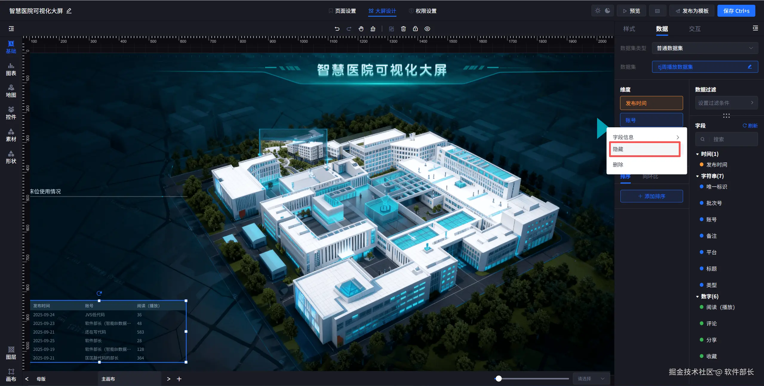 4、新增图表、大屏表格组件支持字段隐藏功能。
