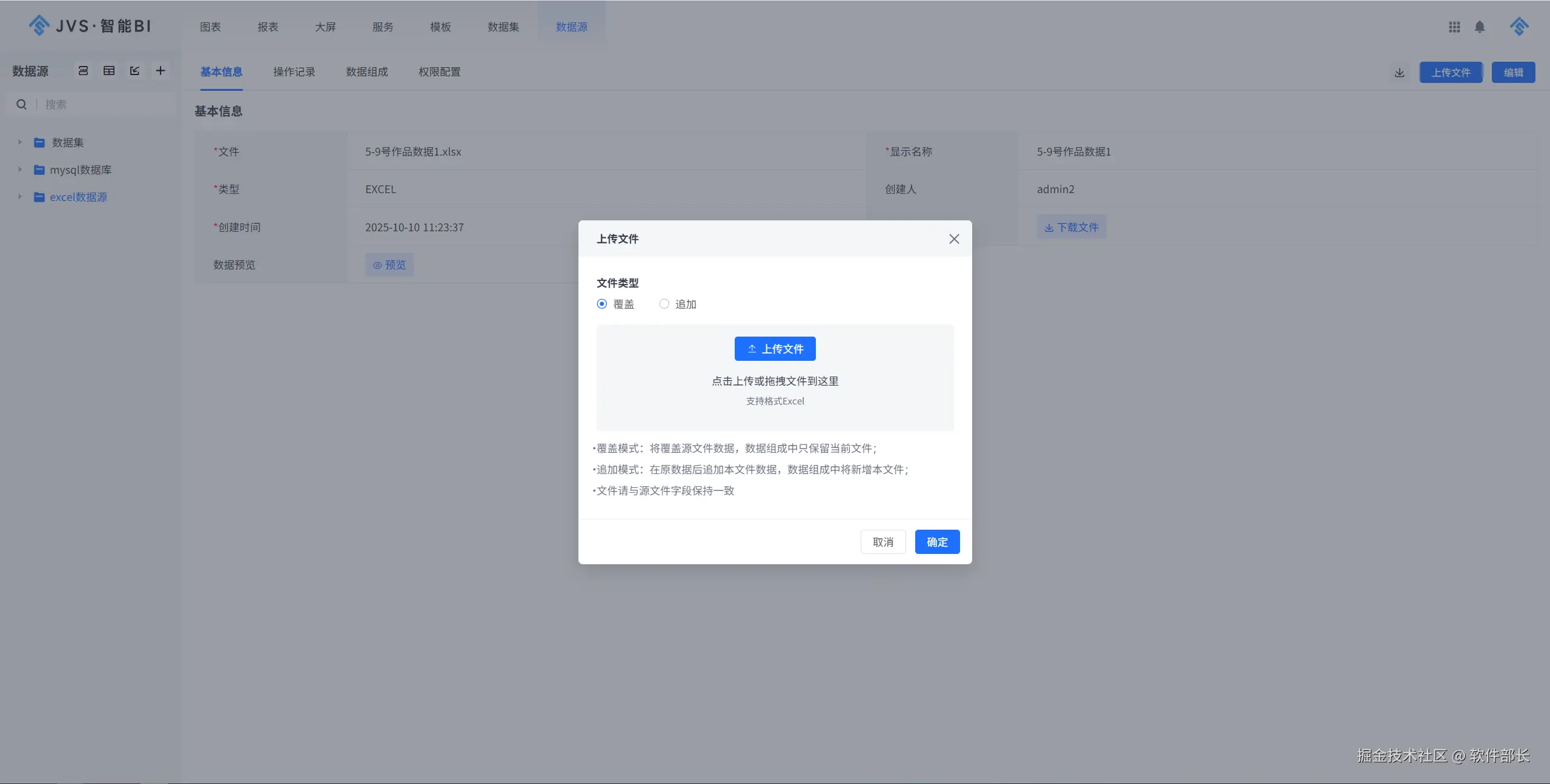2、解决excel数据源上传文件不成功问题,之前上传Excel数据源一直转圈,现已修复。