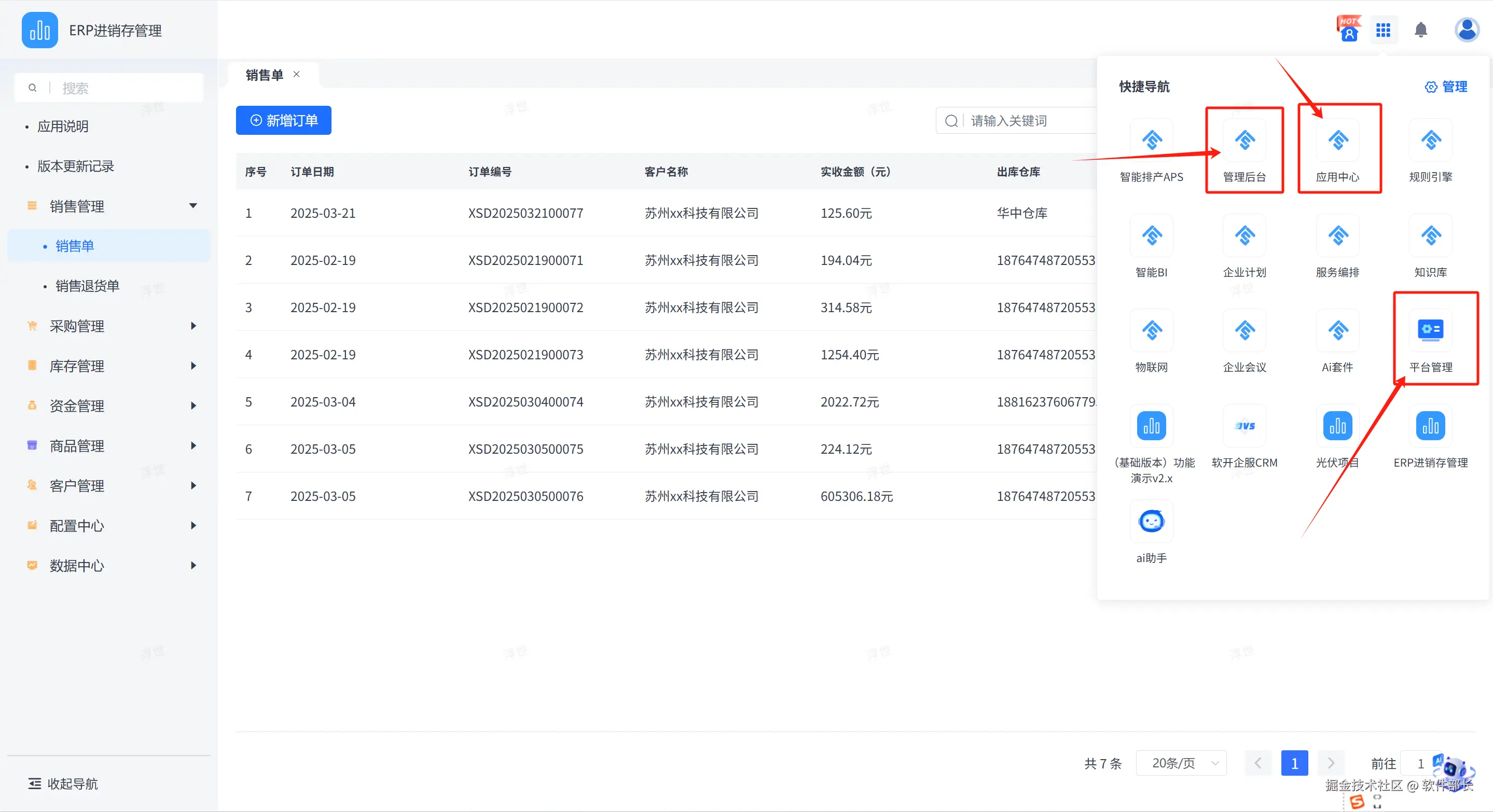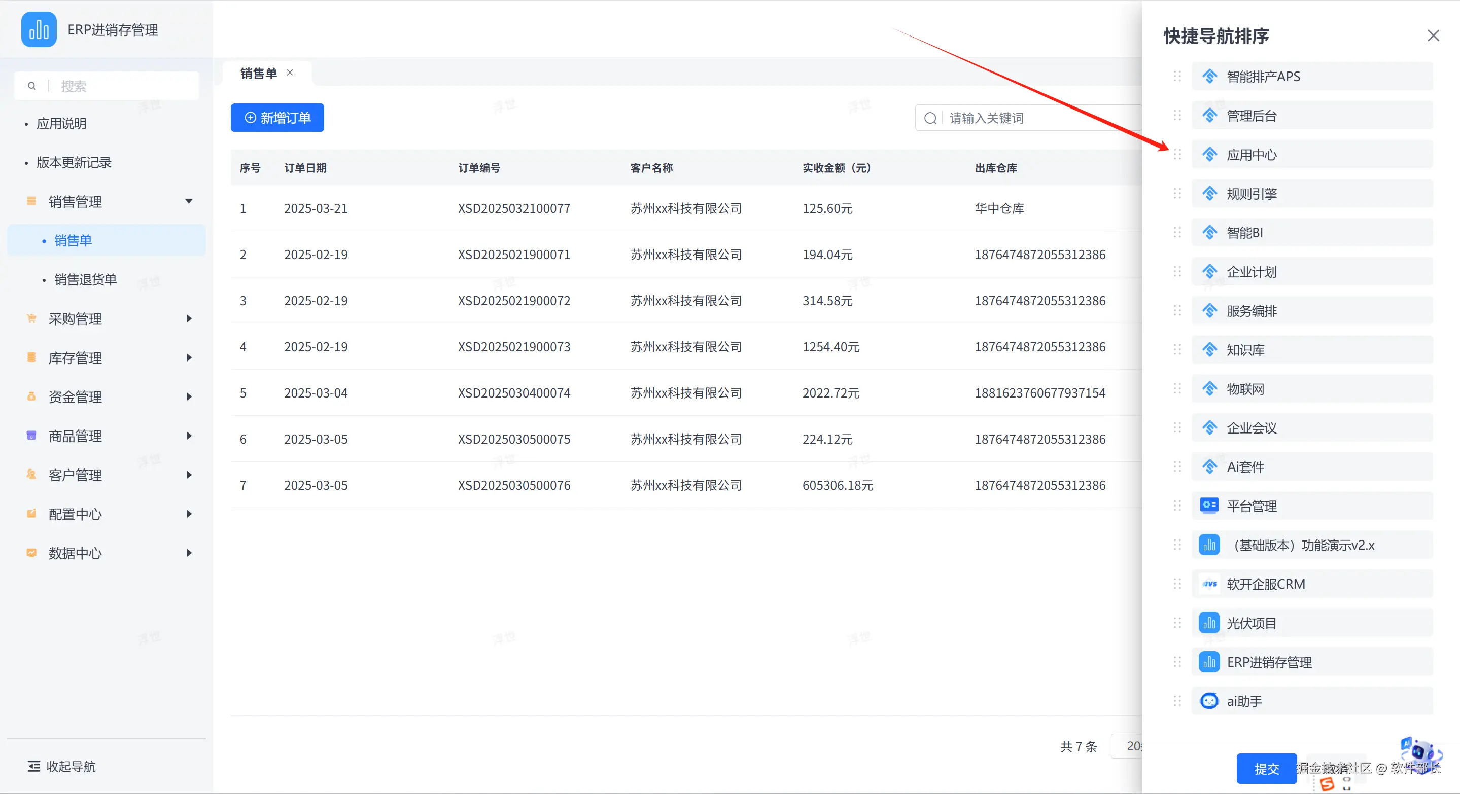 3、最终用户使用时,对于应用导航提供快捷排序的功能,可手动设置应用和模块顺序。自定义更高,提升使用效率。