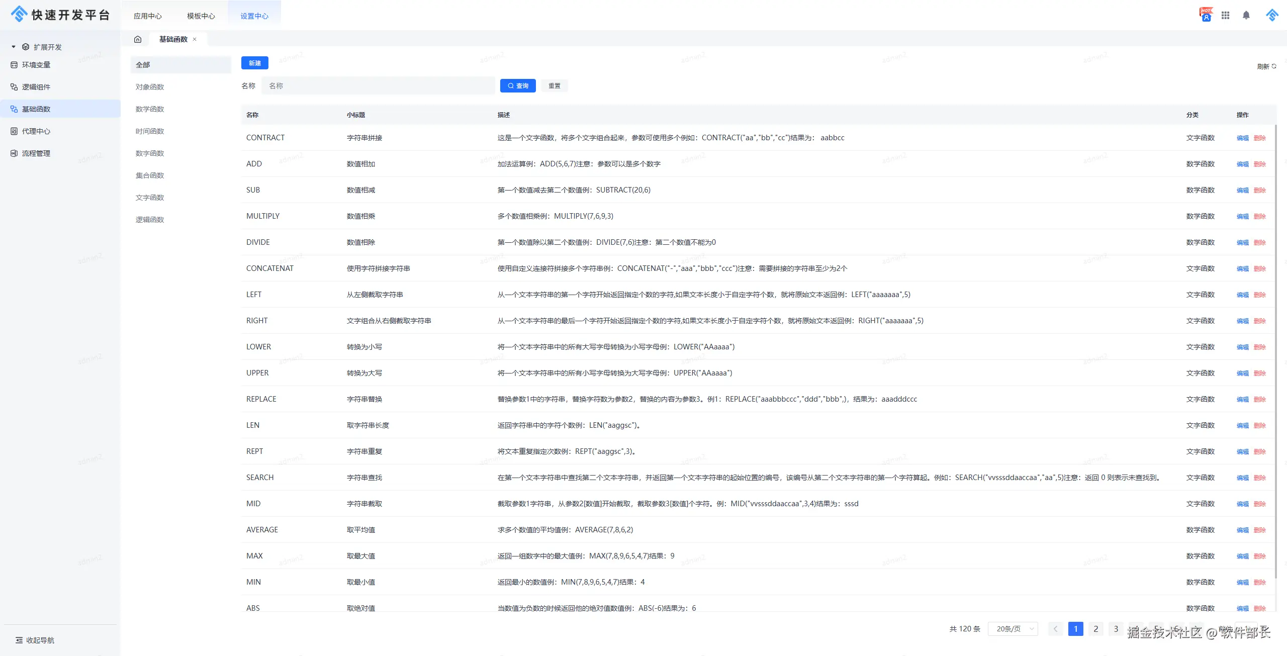 5、优化统一配置中心,再此处配置环境变量、系统函数、逻辑组件、审批代理、流程管理等,管理常用的轻应用统一配置更加高效便捷。