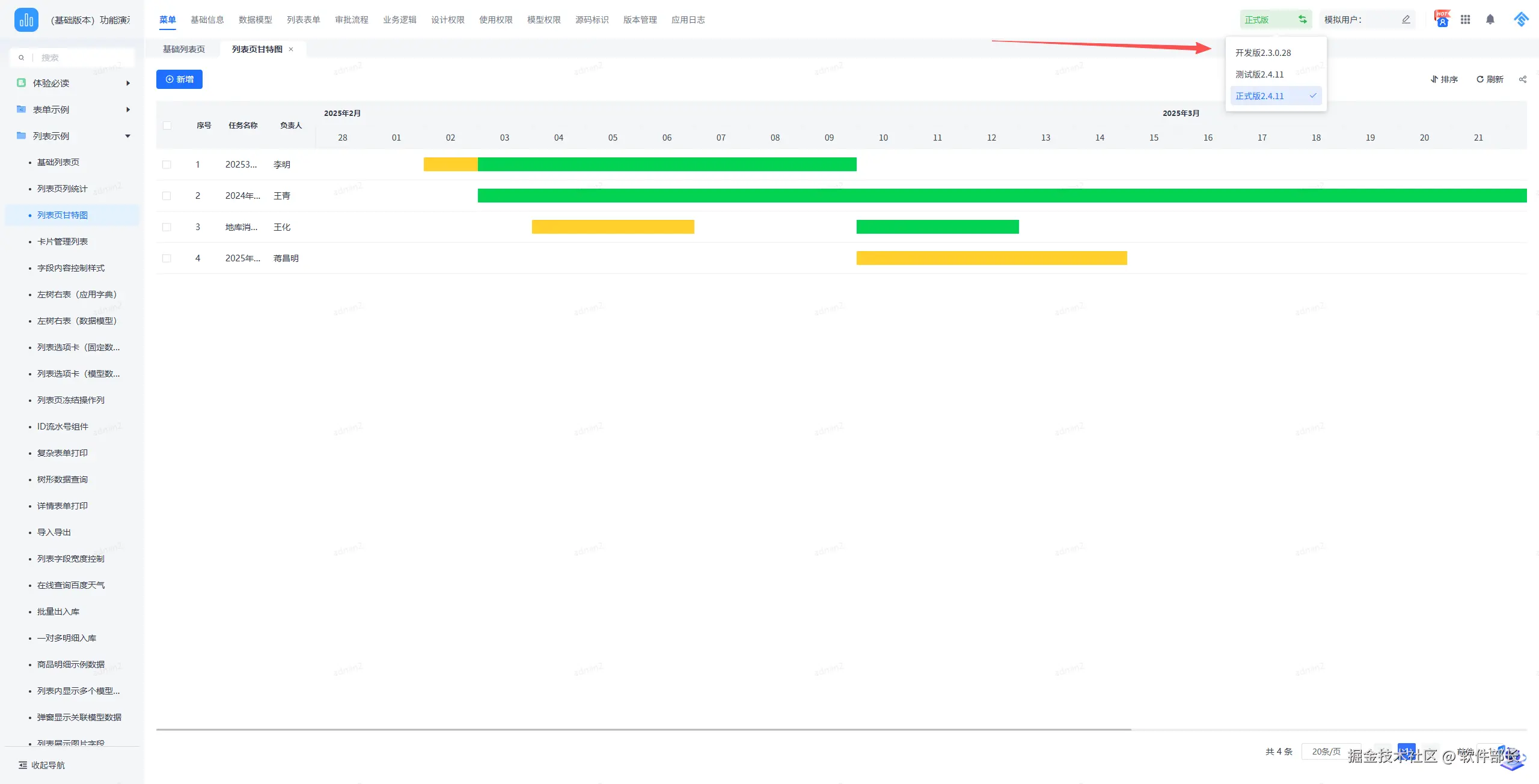 2、优化新版本应用设计模式,进入设计模式下,应用版本切换,可直接切换不同的版本(开发、测试、正式)。