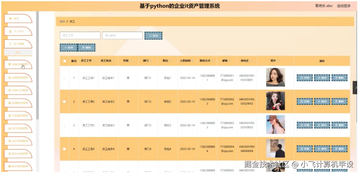 系统严格划分 “管理员” 和 “员工” 两类角色,功能聚焦 “资产录入 - 借用 - 归还 - 统计” 全流程,确保权责清晰、数据闭环: