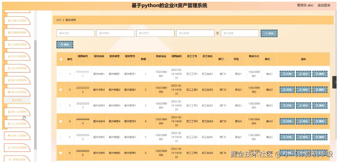 这款系统通过 “Python+Django+MySQL”,解决了企业 IT 资产管理 “台账混乱、借用无流程、耗材浪费” 的问题 —— 实现了 “资产数字化录入、借用流程化审批、消耗可视化统计”,让 IT 资产管理从 “人工操作” 转向 “自动化管理”,管理员工作量减少 60%,企业 IT 资产利用率提升 30%,完全满足中小型企业的 IT 资产管理需求。