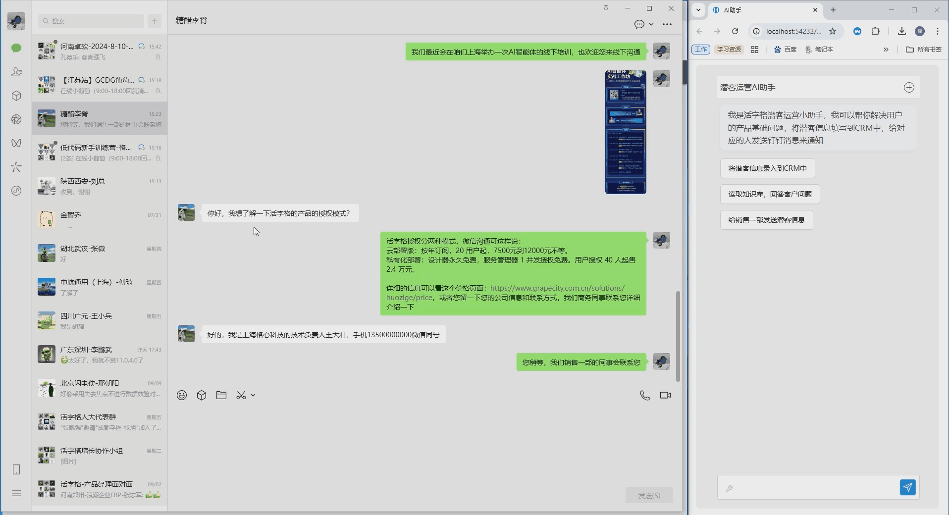 场景目标:当潜客运营专员与客户在微信沟通后,AI 助手能自动: