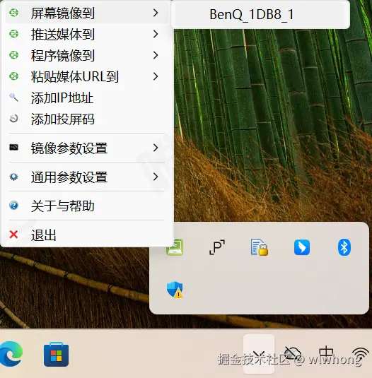 - 右键投屏软件AirPin,选择屏幕镜像到BenQ_1DB8_1(如图11)
