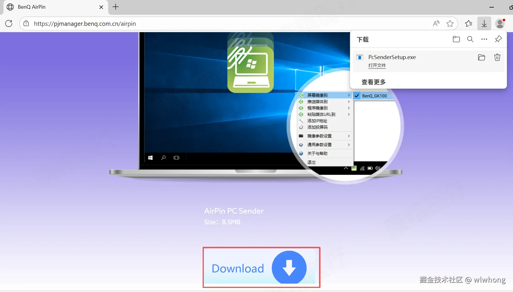 - 进入BenQ网站下载投屏软件。网站地址:dz.benq.com.cn/pc