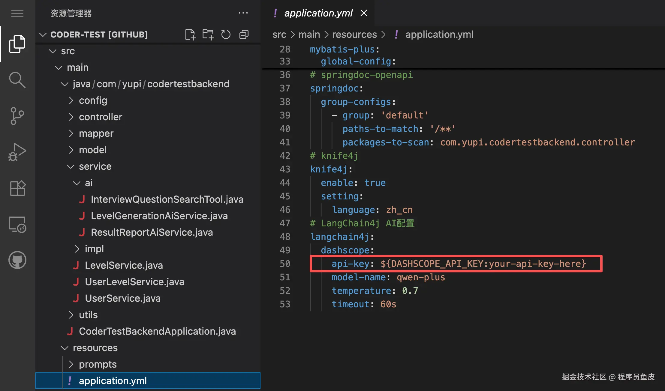 对鱼皮这个项目感兴趣的朋友,可以直接下载源码,把项目配置中 AI 大模型的 API Key 改成自己的,就可以愉快使用了~