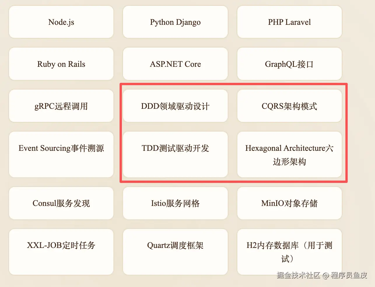 这个什么 DDD、TDD、CQRS 架构、六边形架构。虽不知这些乃何等绝学,但听起来便觉高深莫测,选上去定然不差!