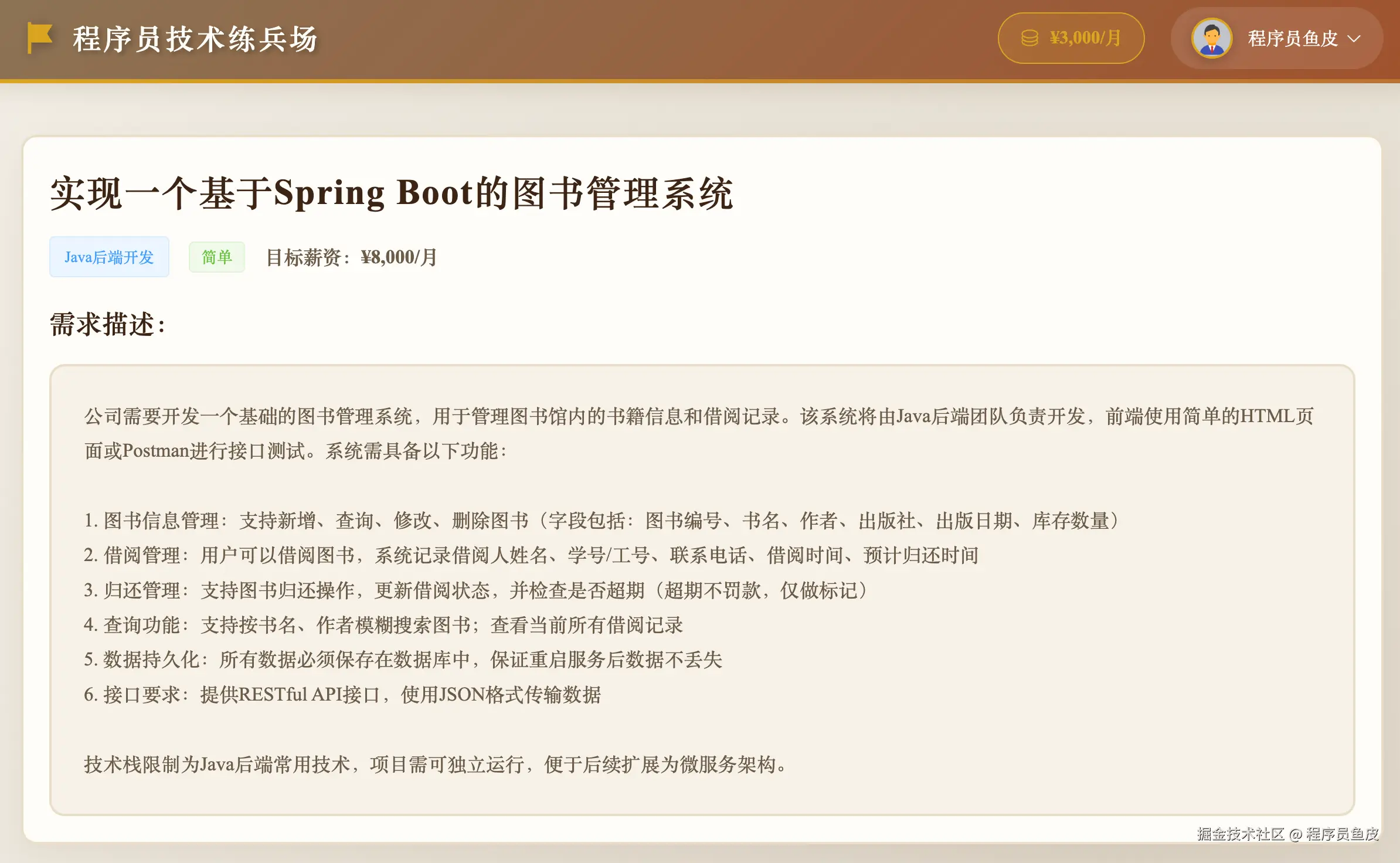 这次你需要实现一个基于 Spring Boot 的图书管理系统,目标薪资,竟然是你梦寐以求的 8000 元!