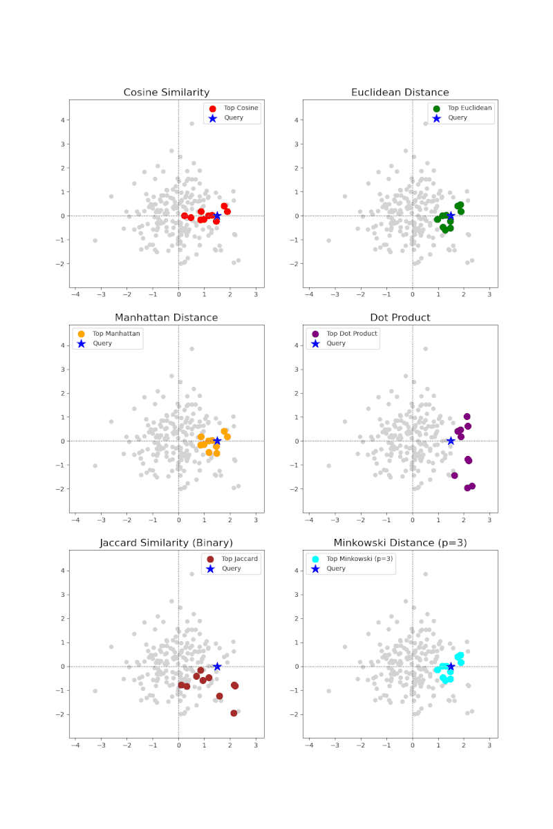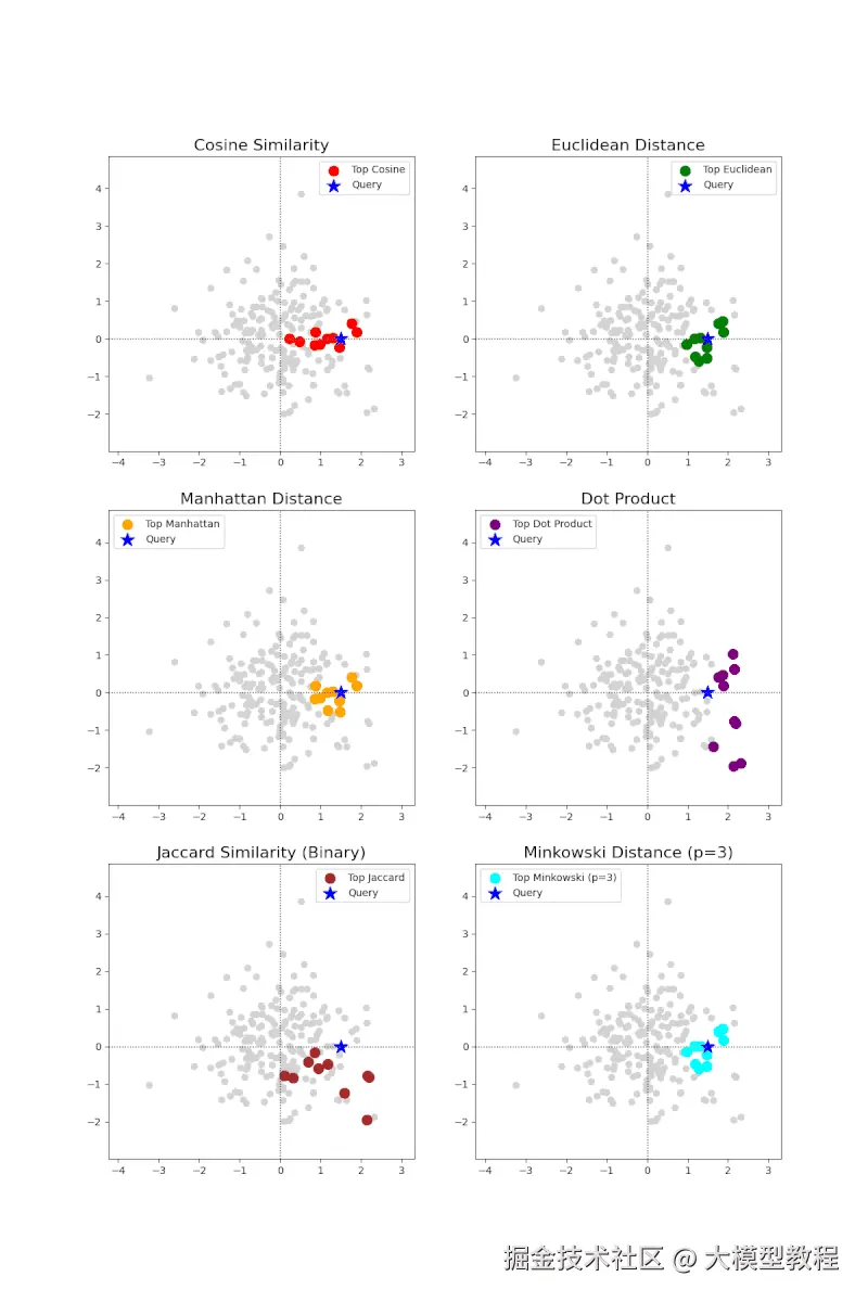 如何进行向量检索?简单说就是给两个向量的"相似程度"打分,例如用余弦相似度计算两个向量的相似度。