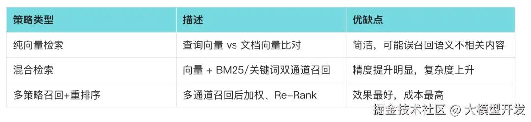 你用的不是 LLM,而是“召回出来的上下文”,所以检索策略决定了:
