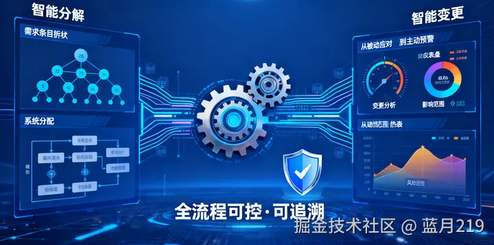 需求全流程中,变更管理与条目化拆解是关键难点。Visual RM 通过 “智能分解与条目化”“智能变更 & 分析” 模块,以 AI 实现需求的精细化管控与变更风险预警,确保需求从分析到落地全过程可控、可追溯。