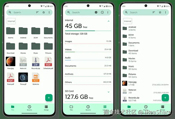 隐私和安全: 您更喜欢无广告的开源解决方案吗?iReaShare Android Manager(无广告但不开源)、Fossify File Manager 或 Material Files 可能是您的选择。