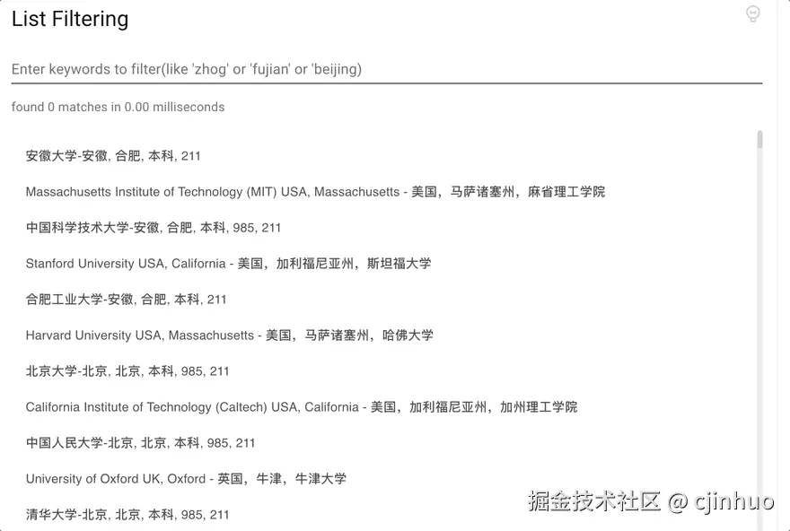 为了让搜索更丝滑(为了吃醋),抽象了一个文本搜索算法(包了饺子),最实现的效果类似如下图所示,线上 demo 例子戳我。