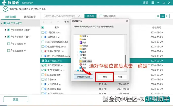 步骤3: 在点击完“导出”后还有最后一步:我们需要为恢复的文件选择好存放的位置。