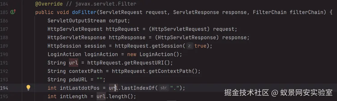 而拦截器在进行后缀白名单检测时,获取后缀的方式如下: