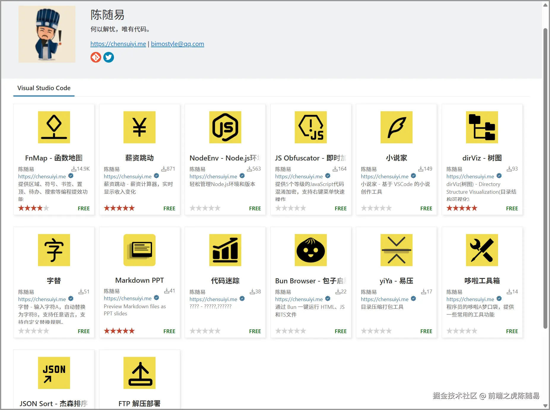 大家好,我是农村程序员,独立开发者,行业观察员,VSCode 插件批发商,前端之虎陈随易。