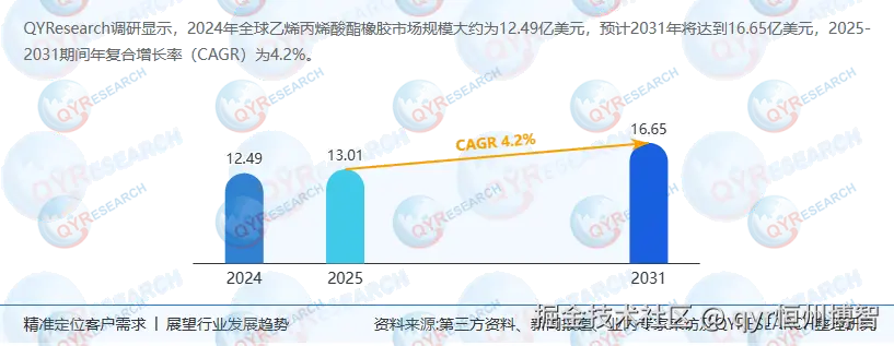 根据QYResearch最新调研报告显示,2024年全球乙烯丙烯酸酯橡胶(EACM)市场规模达12.49亿美元,预计2031年将增至16.65亿美元,CAGR为4.2%。中国作为亚太核心市场,2024年全球市场份额占比达48%,预计2031年将突破35%的全球占比。本报告从定义、供应链结构、上下游动态、核心厂商竞争格局、政策影响及未来趋势等维度展开分析,结合技术演进与区域市场差异,为投资者提供前瞻性决策依据。