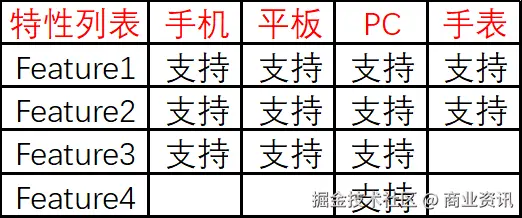 第一步:确定需求规格,梳理特性在多设备上的特性规格,以下示例图供参考。