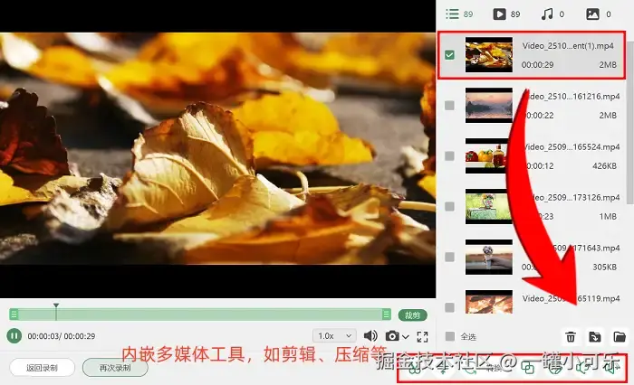 步骤3:录制结束后,系统会自动跳转至视频预览界面,此时可以快速检查内容完整性与清晰度。如果需要进一步优化视频效果,可以点击预览界面中的 “高级剪辑” 入口,进入剪辑功能区进行精细化操作,例如裁剪冗余片段、添加基础特效等。