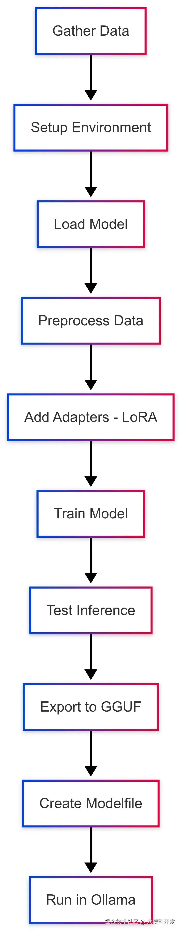 下面是全流程。我们会用 Unsloth(一个免费、开源、快速微调工具)和 Google Colab(免费的云端 GPU,不用高端硬件)。Base model 用 Phi-3 Mini(又小又快)。