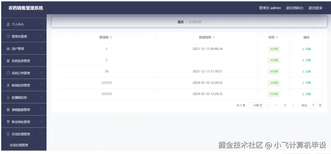 本系统通过 Java+Spring Boot+MySQL,解决了传统农药品管理 “效率低、不规范、信息滞后” 的痛点,实现了 “商品自动化管理、订单线上化处理、反馈实时化交互”,管理员工作效率提升 80%,用户下单时间从线下 30 分钟缩短至线上 5 分钟,完全满足中小型农药品销售场景需求。