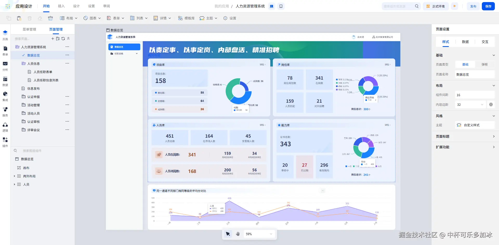 最后,我们进入数据概览的页面中,这里包含了各类直观的图表和指标卡。同样,我们也可以对图表数据进行权限隔离。