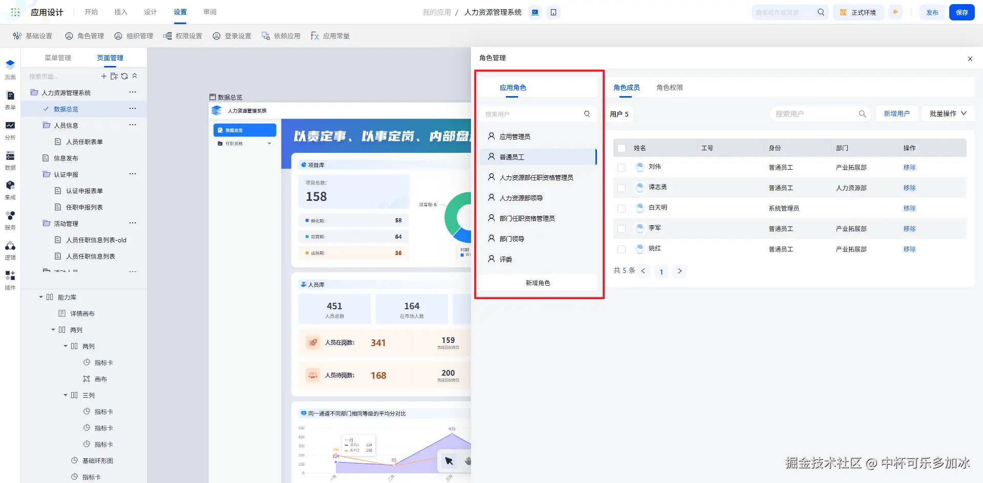 进入到应用配置页面,首先我们需要配置人力资源管理系统中涉及到的核心角色。