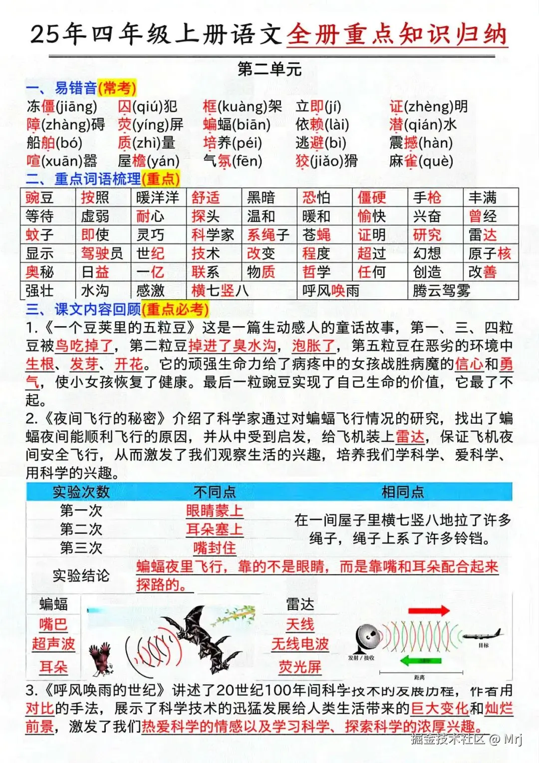 四年级上册语文《全册重点知识点归纳汇总》