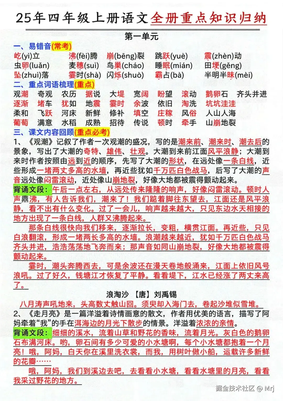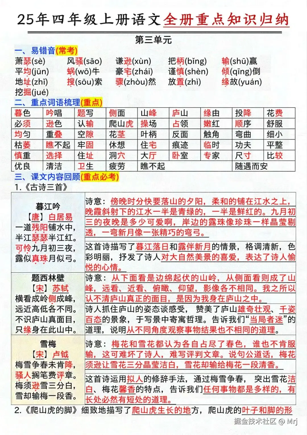 25年人教版四年级上册语文《全册重点知识点归纳汇总》,共16页,电子版可下载可打印,这份四上单元知识点归纳汇总,包含了语文每个单元的易错音、重点词语梳理、课文内容回顾、语文园地等内容,是孩子预习和复习的好帮手,需要的家长抓紧领取上,让孩子背一背吧。