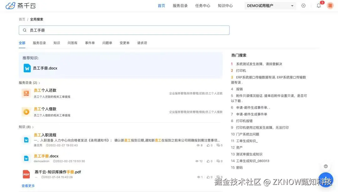 对于标准故障或常见使用问题,燕千云ITSM可通过智能客服与AI知识库引导用户自行排查与处理,显著提升效率与经验复用率。