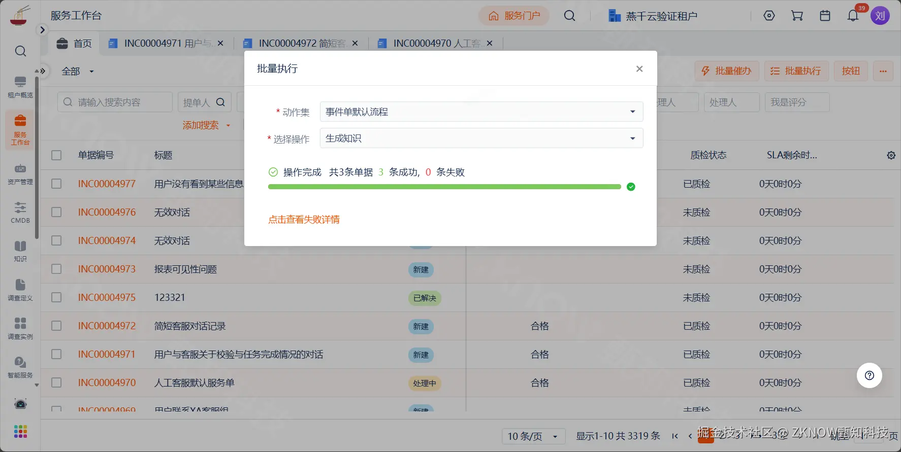 处理结束后,问题的解决步骤、根因分析、操作说明等内容都支持一键生成结构化知识,录入知识库,形成可查询的知识条目。