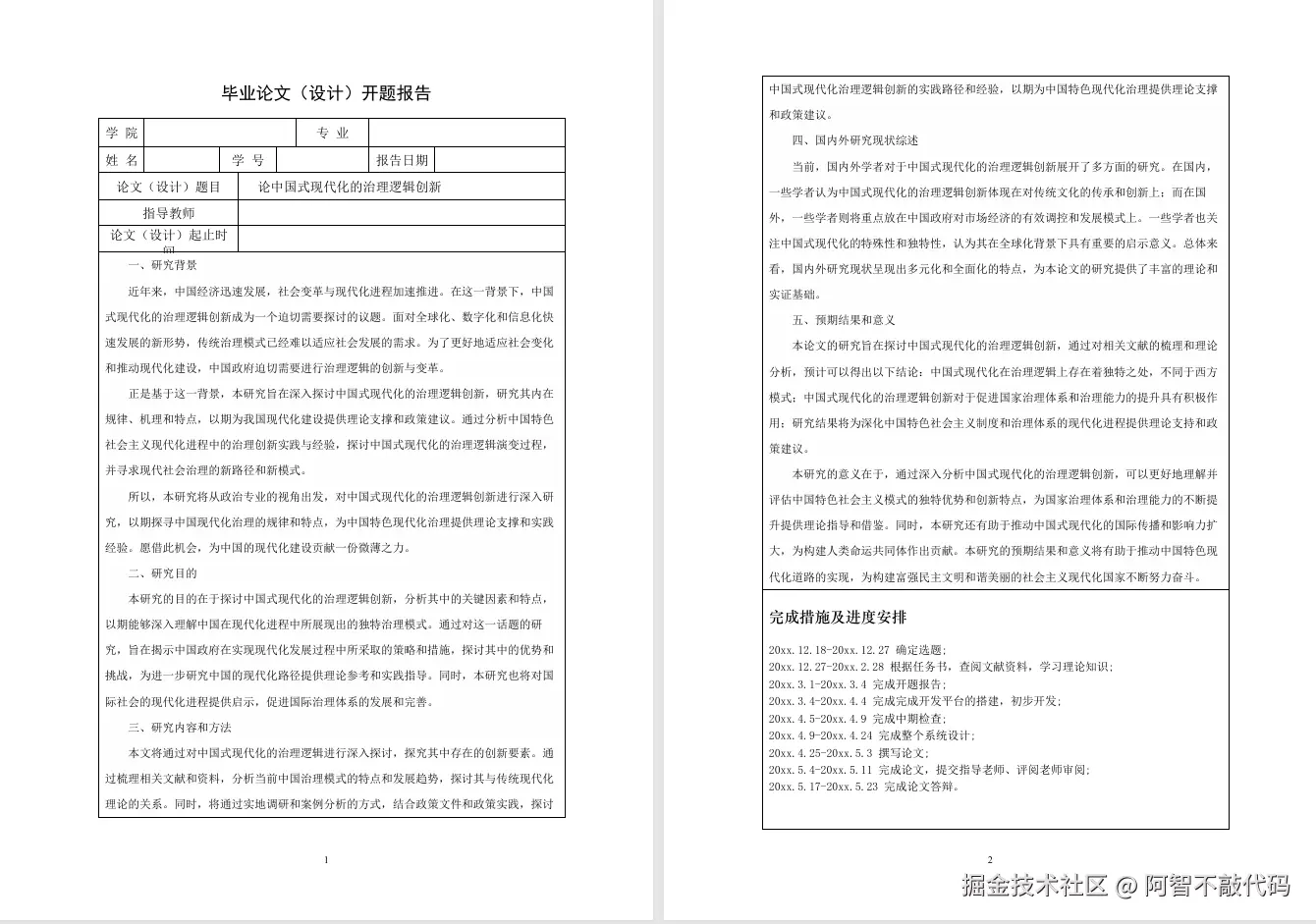 - 开题报告模板