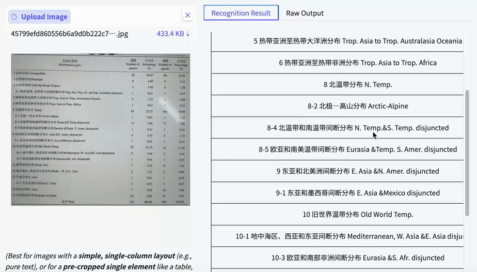 PaddleOCR-VL不仅100%还原了表格的排版布局,精准处理了合并单元格,甚至连与边框重叠的文字都分毫不差地提取出来。它直接输出了结构化的HTML代码,展现了真正的“表格理解”能力。如果要挑刺,可能只有在线Demo的预览文字没有居中,但这已是吹毛求疵。