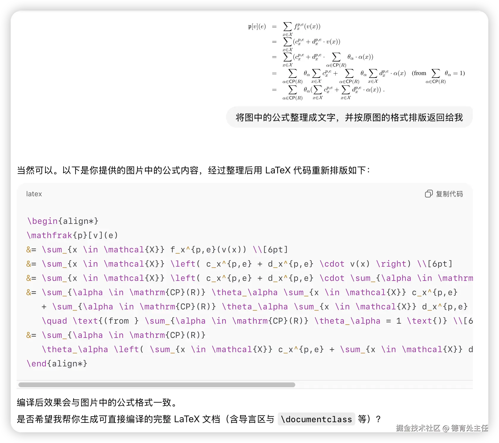 ChatGPT给出的是LaTeX代码,需要用工具转一遍。