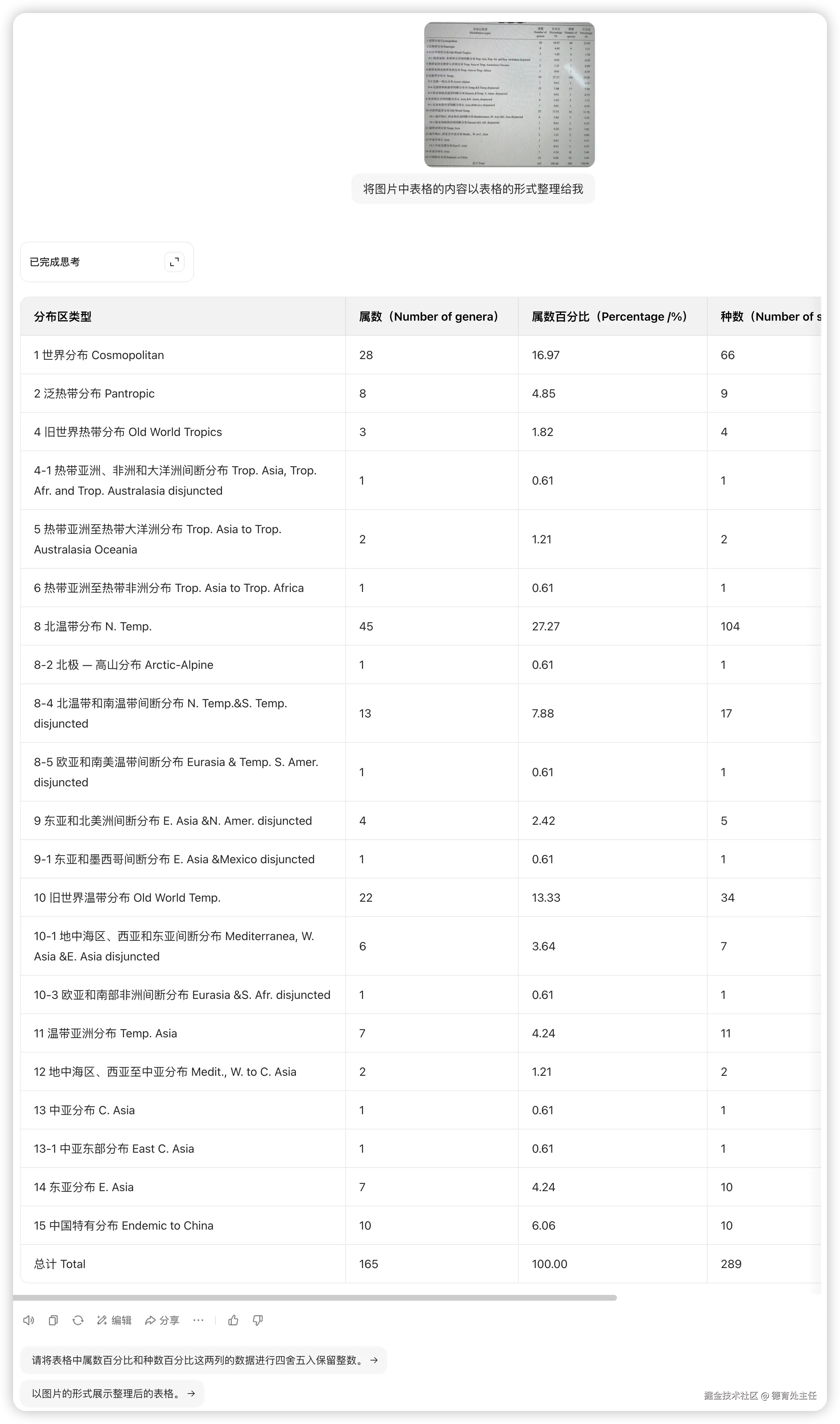 豆包的识别准确率和排版都没问题,唯一一个问题是表头第一列的“Distribution types”这个词不见了。