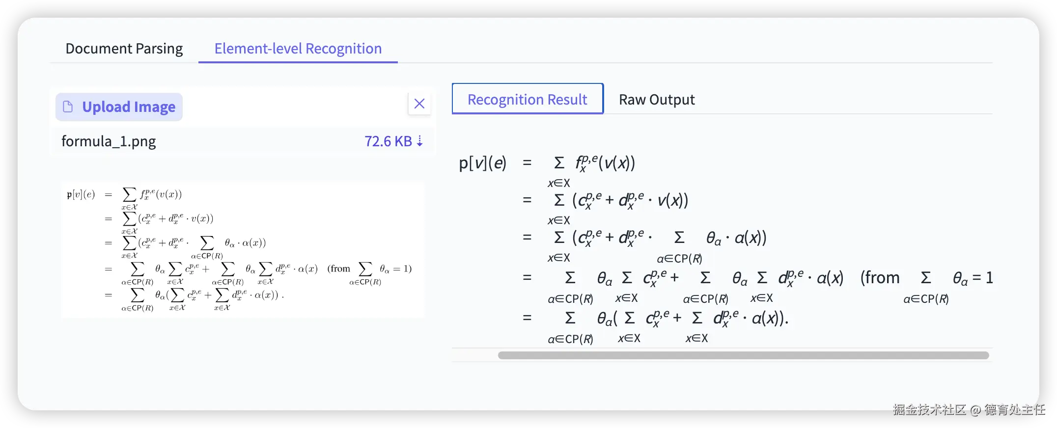 进入专业领域。数学公式包含了大量特殊符号、上下标,是OCR识别的噩梦。这次我们使用印刷体,看看谁能攻克这个难关。