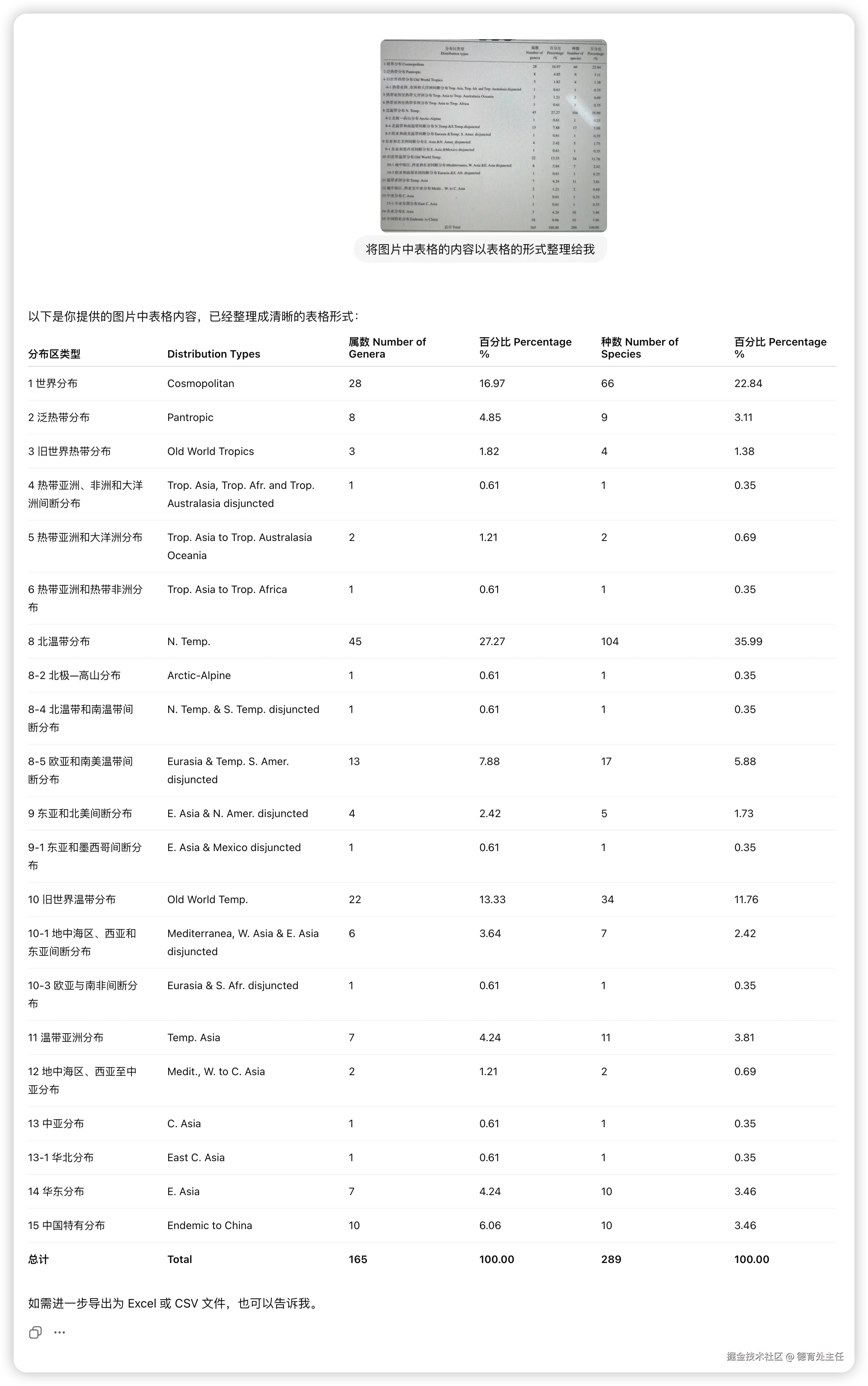 ChatGPT好像把中英文分离开来了,我们肉眼能察觉到原图第一列是中文+英文,ChatGPT硬是要把它们分成两列😂