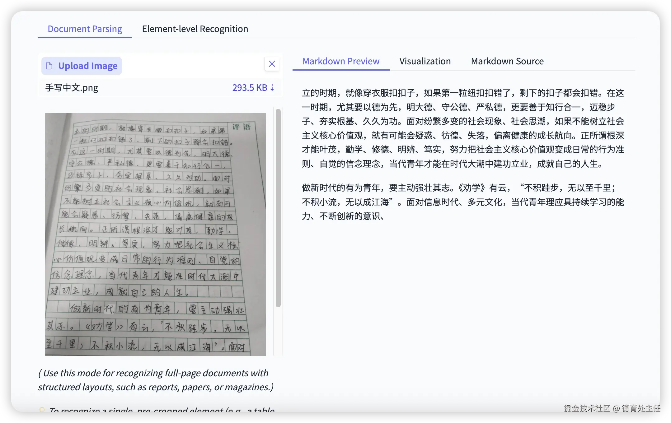 在中文手写识别这个核心场景,PaddleOCR-VL展现了绝对的实力,它忠实于原文,精准还原,不像其他大模型会“画蛇添足”。