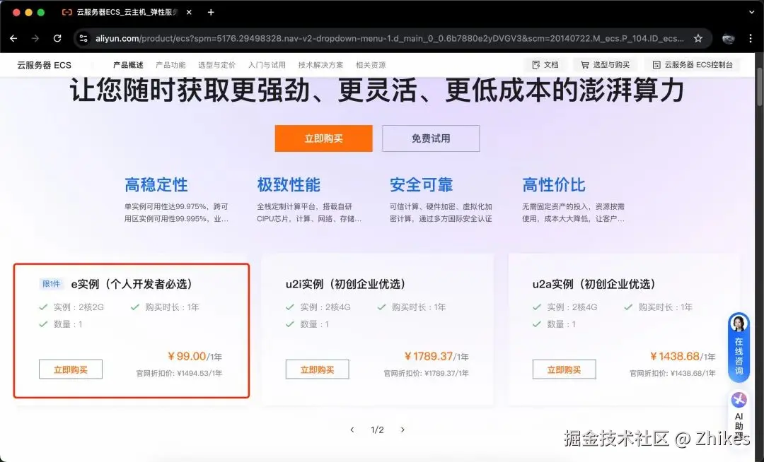 💰 成本极低,我用的配置是 2核CPU + 2G内存 + 3M带宽,每年服务器只需 99元。