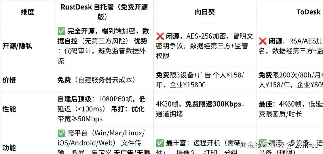 最早我一直在用 向日葵,但后来被限速,体验越来越差。远程操作,没必要花钱,于是开始找免费的替代方案。