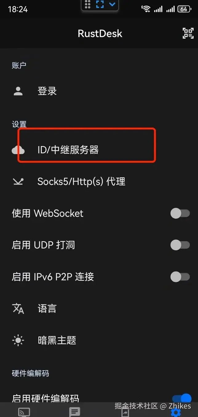 打开app,点击底部的设置,然后找到 ID/中继服务器