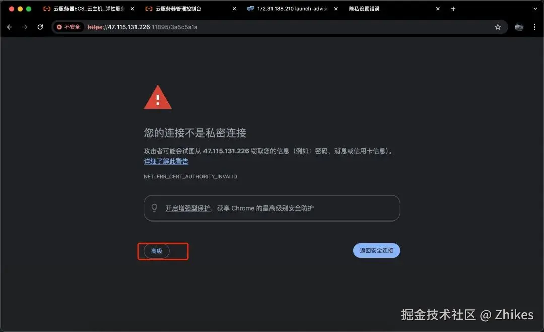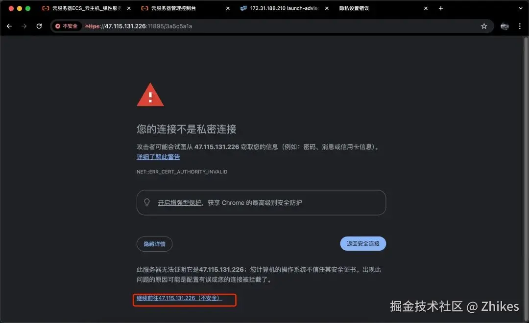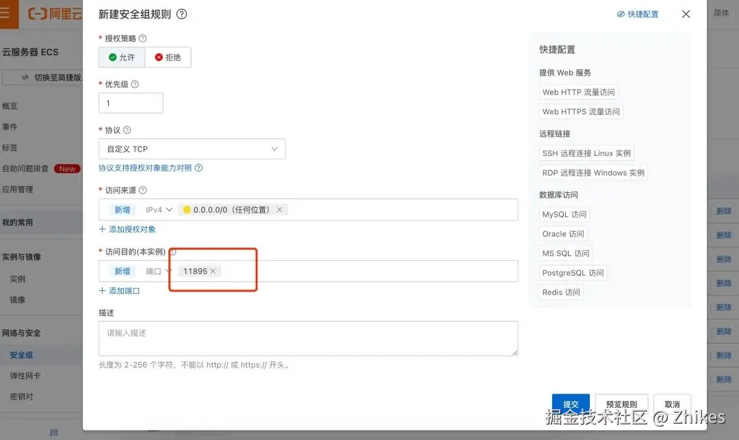 先去服务器安全组放行 11895 端口,你的可能不一样,视你的输出信息而定。