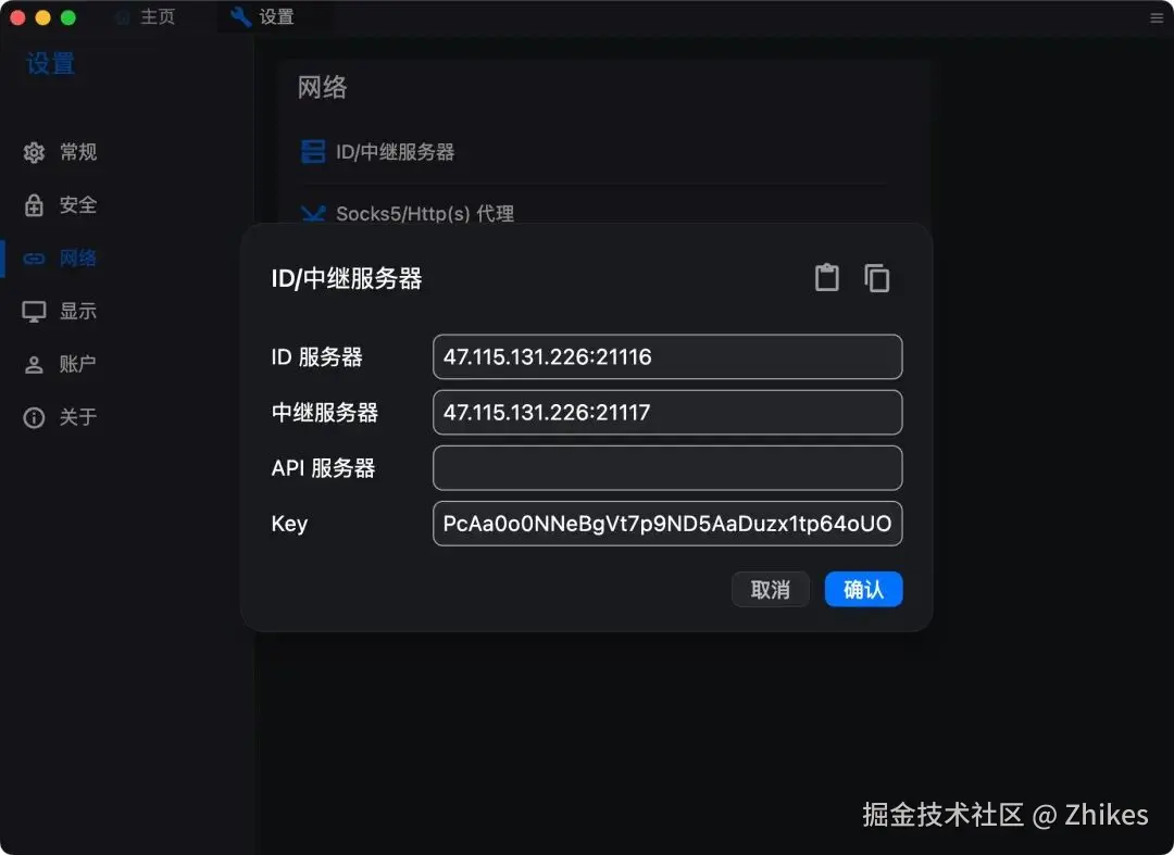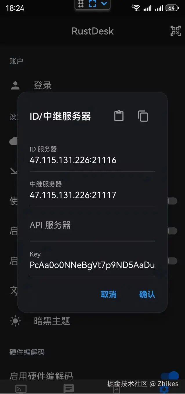 经过配置后,你的rustdesk自托管服务器的配置就是以下