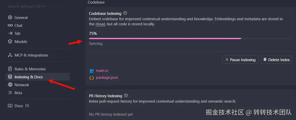 💡 提示:在提问前请确保 Cursor 的 Indexing 已完成,否则 AI 无法准确理解项目结构。