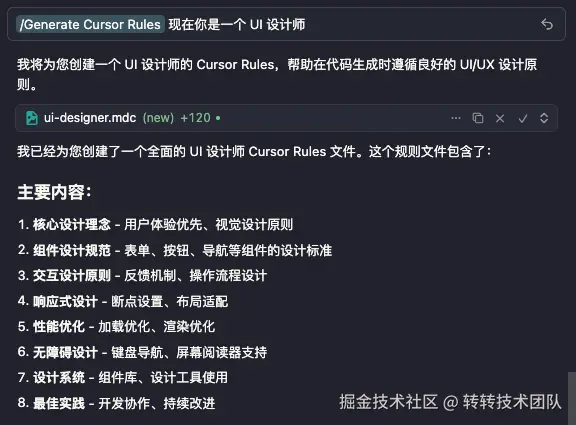 ⚙️ 2、Cursor 直接生成 Rules 文件