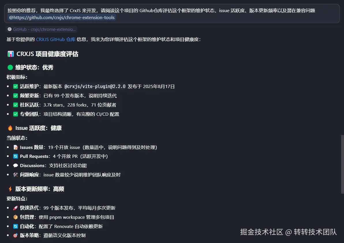 在任何工程项目中,技术选型都是最关键的第一步。这一环节往往耗时且枯燥:需要人工对比不同框架的特性、深入阅读 GitHub 仓库、评估社区活跃度与兼容性问题。整个过程不仅繁琐,而且容易遗漏关键细节。现在,可以使用 AI 的辅助分析能力,让这个流程变得高效。