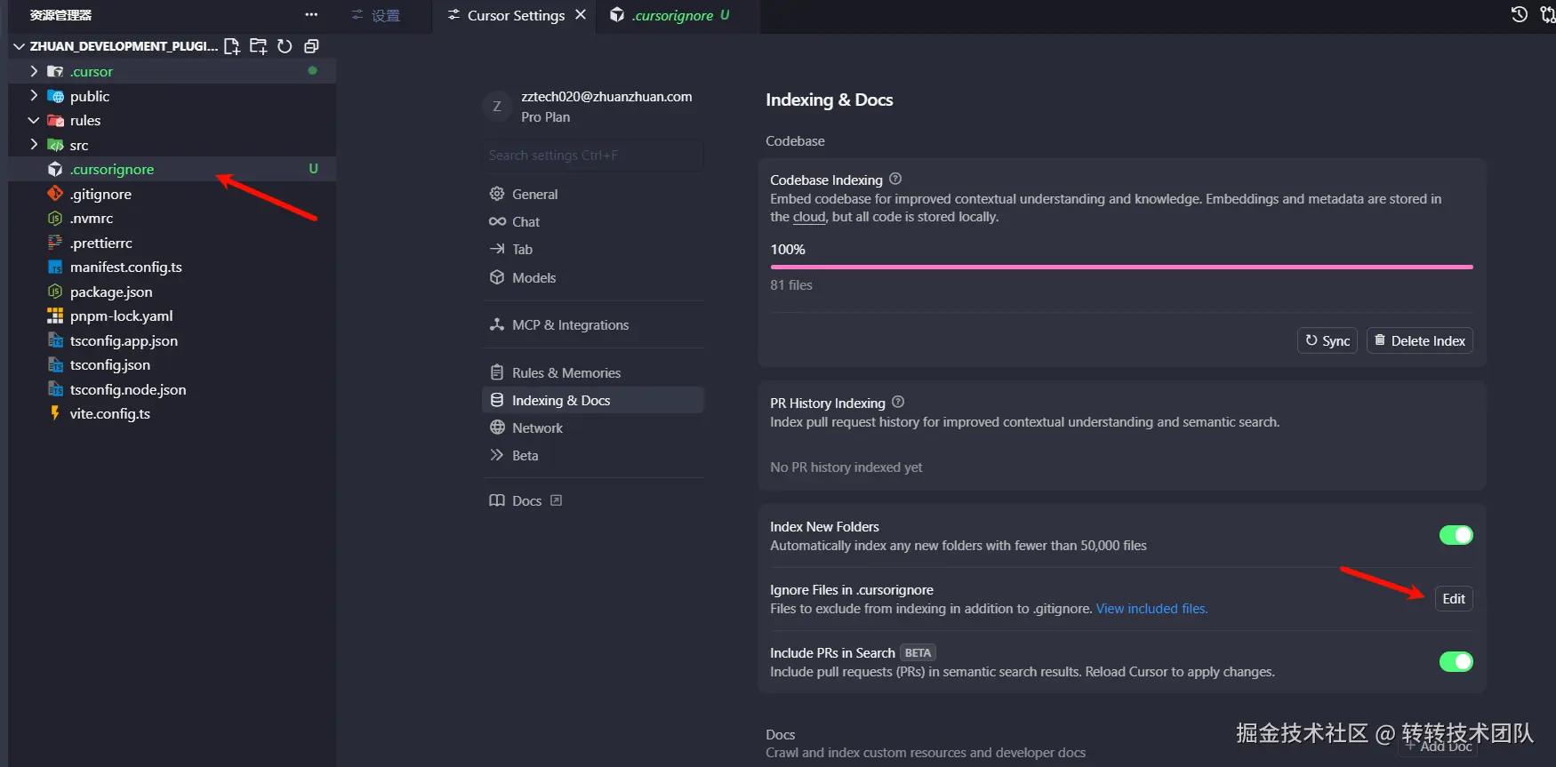 别忘了创建并配置 .cursorignore 文件,它的作用类似 .gitignore,在大型代码库中,排除无关部分,以加快索引并更准确地定位文件。