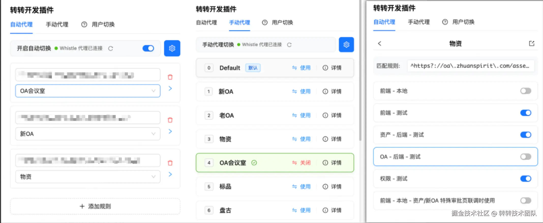 - 自动代理切换:在访问预先配置的域名时,自动匹配并切换到对应的 Whistle 代理规则。
