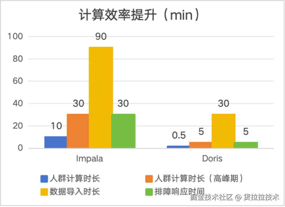 - 在计算效率方面,单个人群的计算能够实现秒级响应,即使在高峰期,响应时间也保持在 1 分钟以内。相比之下,Impala 架构下该计算过程通常需要 10 至 30 分钟。采用 Doris 后,计算效率提升了近 30 倍。